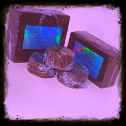 Kings Love On Me Too face and body handmade bar is fine and black with a smell that makes you want to love him too.He's a cleanser bar or every day use bar that will love on your skin as it should king.Glow your skin King with "Love On Me Too." You can also cleanse your beard with this.